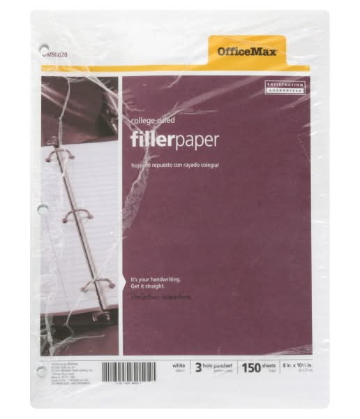 OfficeMax College Ruled Filler Paper, 8in*10.5in