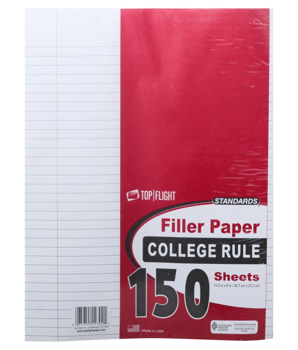Top Flight College Ruled Filler Paper, White (175 ct)
