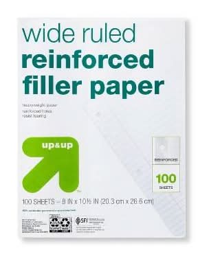 Five Below Wide Ruled Filler Paper With 3 Hole Punch, 10.5x8 in (125 ct)