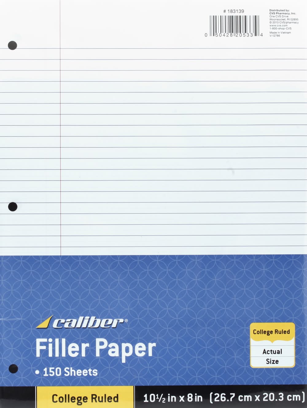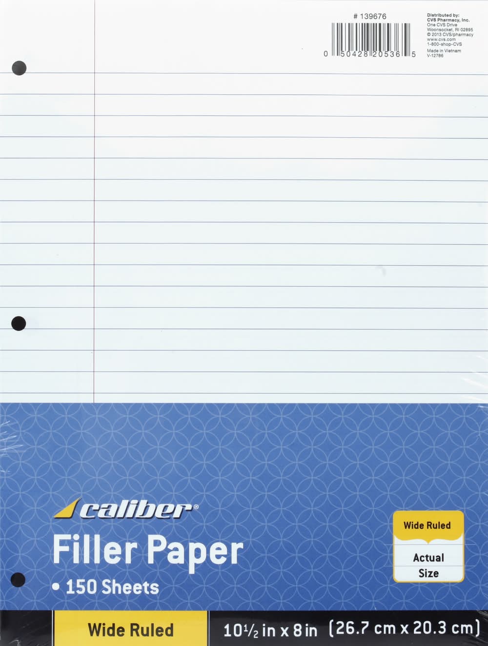 Caliber Wide Ruled Filler Paper, 26.7*20.3 (150 ct)