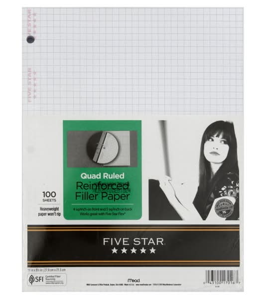 Five Star Wide Ruled Reinforced Filler Paper Sheets (0.9 lbs)