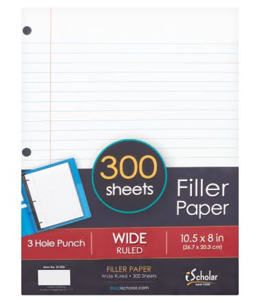 iScholar Wide Ruled Filler Paper 300 Sheets, White