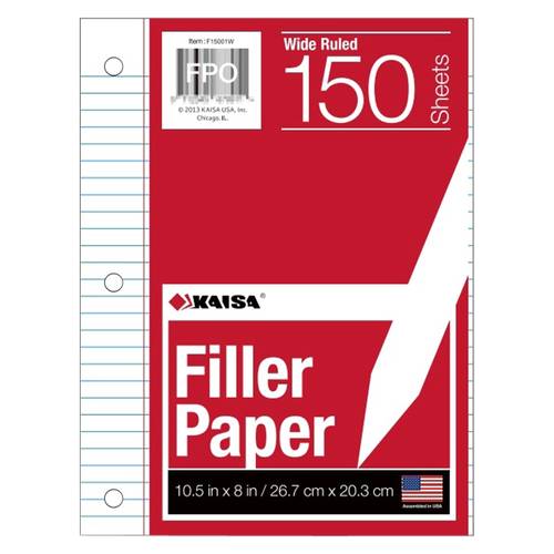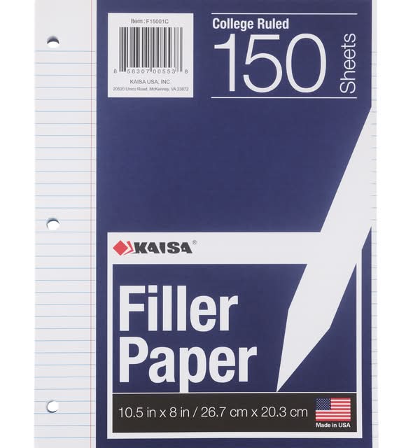 Kaisa College Ruled Filler Paper Sheets, 10.5x8 in (150 ct)