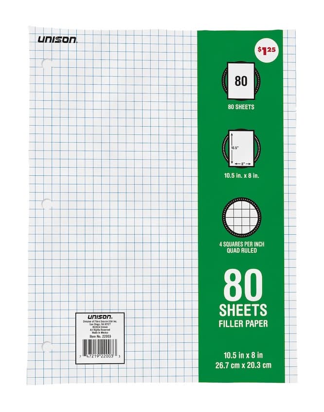 Unison Quad Graph Filler Paper, 10.5x8 in (80 ct)