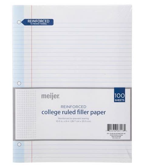 Meijer Reinforced Filler Paper 100 Sheets Wide Rule