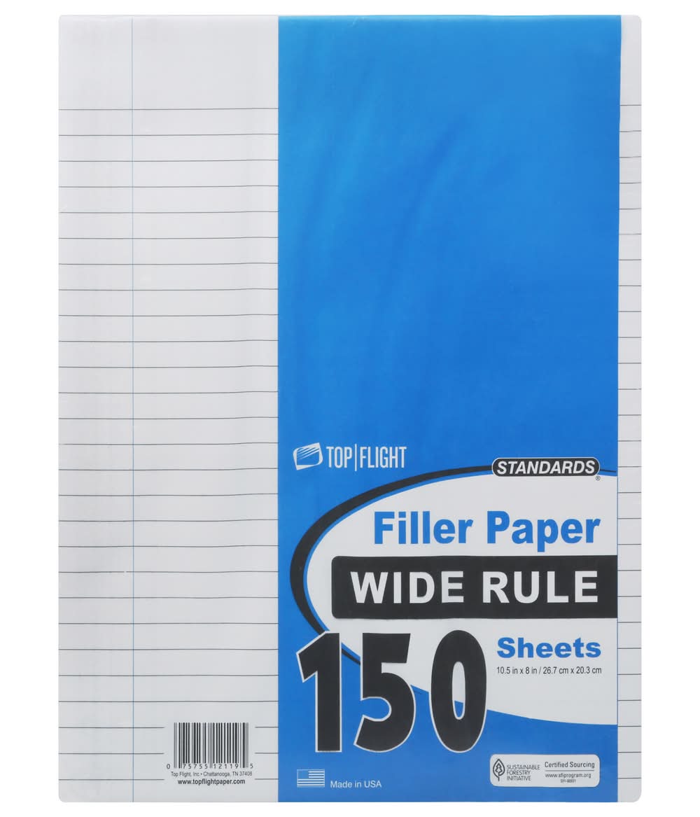 Top Flight Standards Wide Rule Filler Paper 150 Sheets (1.2 lbs)