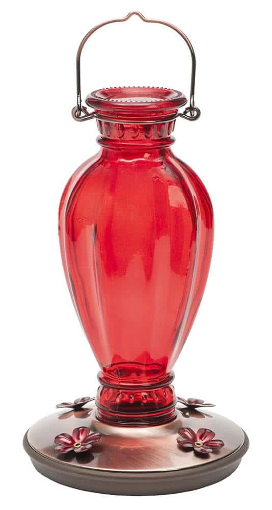 Wild Wings Scarlet Swirl Glass Gravity Hummingbird Feeder 20 oz, Red