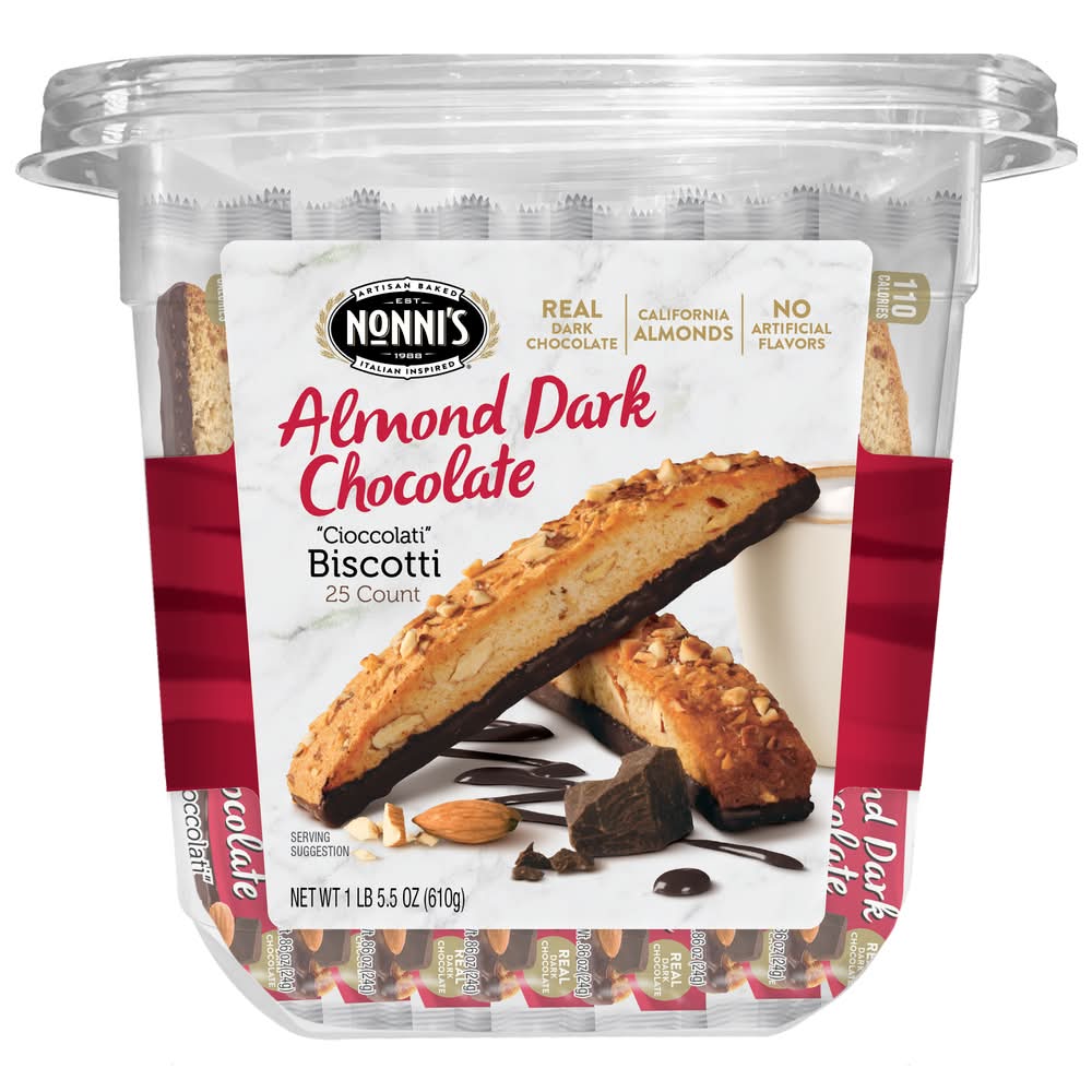 Nonni's Almond Dark Chocolate Biscotti Tub (21.5 oz, 25 ct)