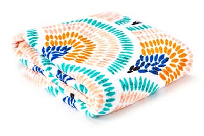 Real Living Blossom Arches Fleece Throw Blanket, White-Blue-Orange