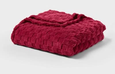 Room Essentials Checkered Faux Shearling Plush Bed Blanket, Queen, Magenta