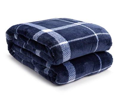 Plaid Twin/Full Velvet Plush Blanket, Navy-White