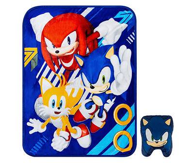 Franco Sonic and Friends Nogginz Pillow and Plush Blanket Set, 40 x 50 inches, Blue
