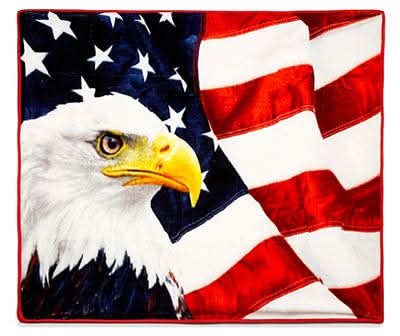 Patriotic Eagle Raschel Throw Blanket, Red-White-Blue