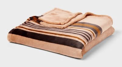 Threshold Microplush Bed Blanket, King , Khaki Border Stripe