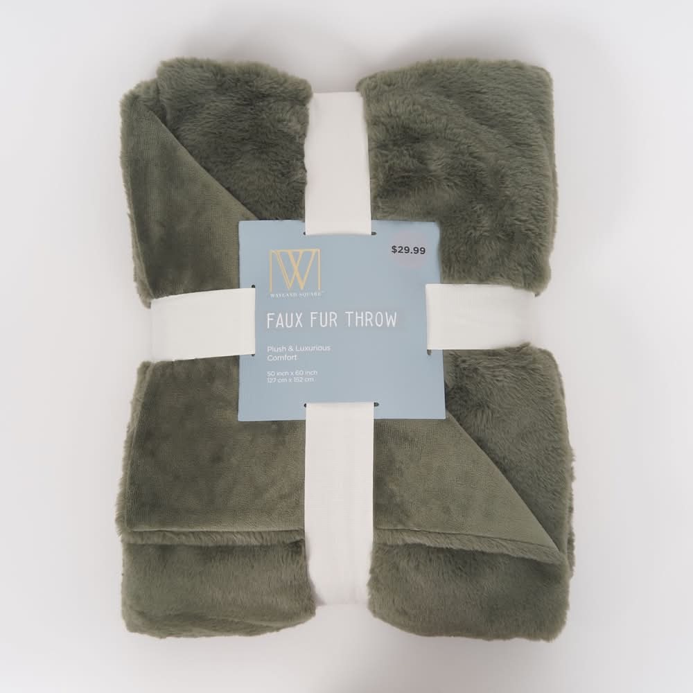 Wayland Square Faux Fur Throw Plush Blanket, 50x60 in, Green