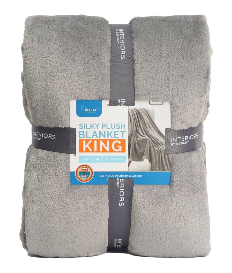 Interiors By Design Super Soft Silky Plush Blanket, King, Gray