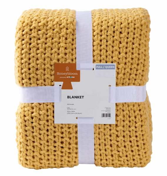 Honeybloom Chunky Knit Throw Blanket, 50x60, Yellow