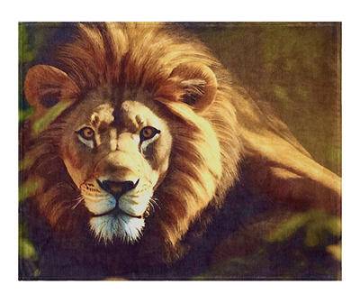 Lion Glare Fleece Raschel Throw, 50" x 60", Tan