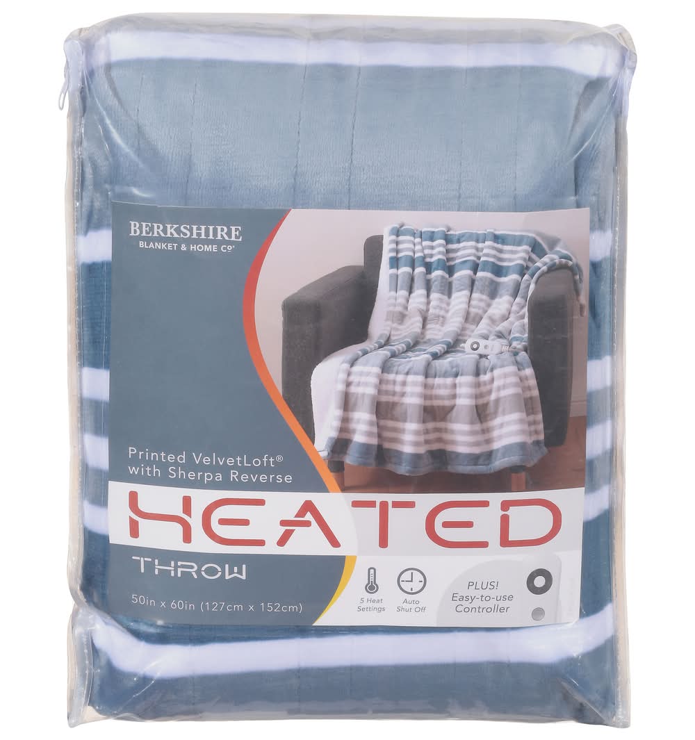 Berkshire Blanket & Home Co. Blue Printed Loftmilk Sherpa Stripe Heated Throw