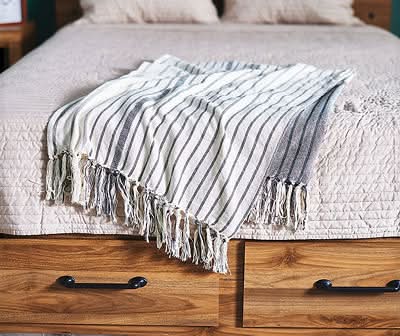 Stripe Tassel-Trim Cotton Throw, 50" x 60", White-Gray