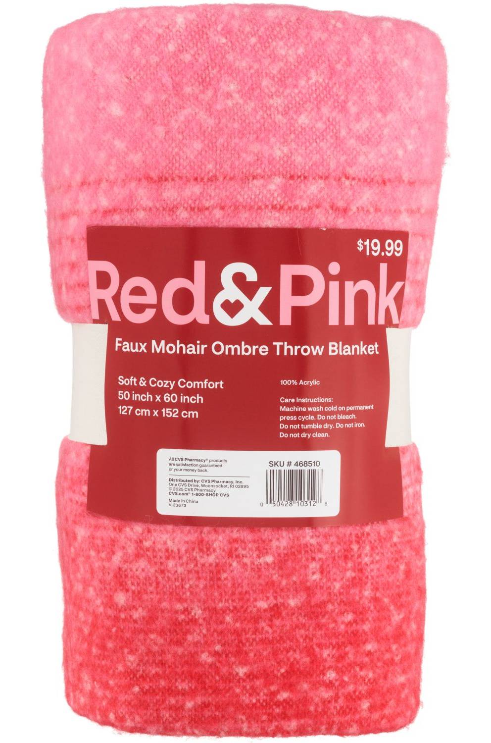 Red & Pink Faux Mohair Ombre Throw Blanket, 50X60 in