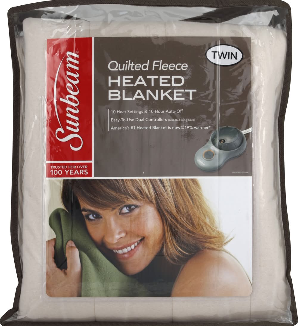 Sunbeam Quilted Fleece Heated Blanket, Twin, Off-White