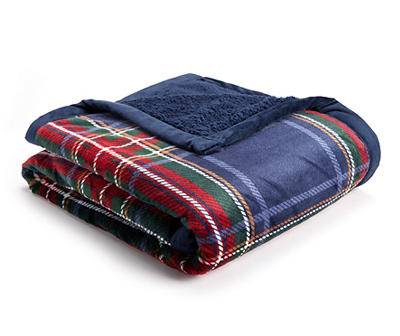 Broyhill Navy & Red Plaid Sherpa Throw, 50" x 60"
