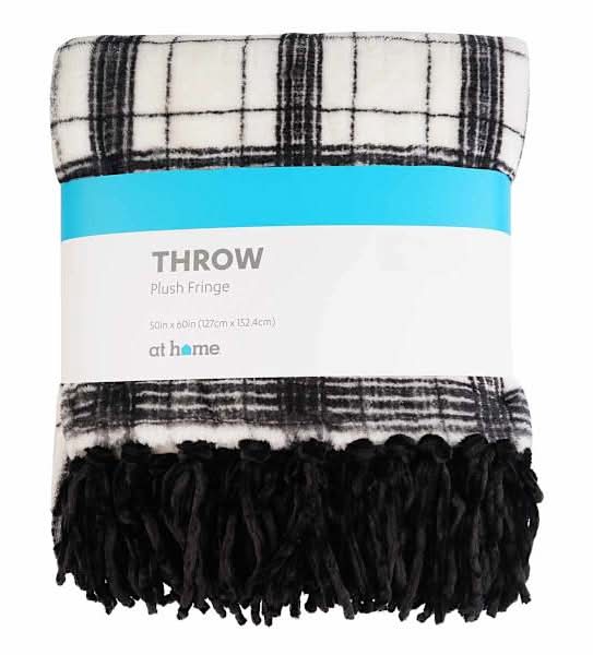 At Home Plaid Fringe Throw Blanket, 50x60 in, Black