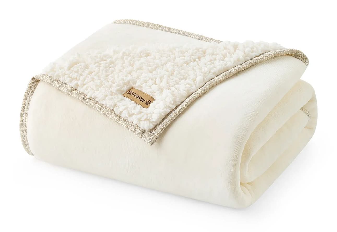 Bearpaw Hallie Trim Throw Blanket, OS, Snow White