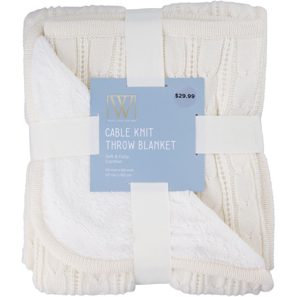 Wayland Square Cable Knit Sherpa Throw Blanket, 50x60 in, Cream