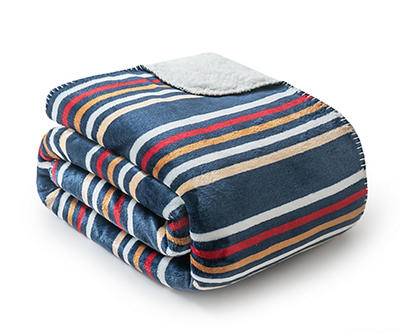Broyhill Stripe Velvet & Sherpa Throw, 50" x 60", Navy-Red-Brown