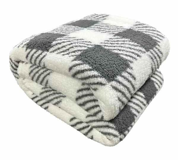 Broyhill Velvet Plush Blanket, 72" x 90", Gray Plaid