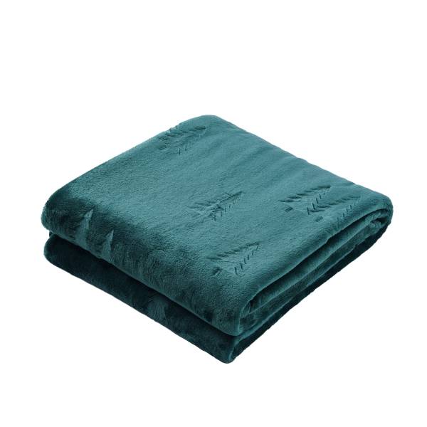 December Home Embossed Tree Plush Throw Blanket, 50 in x 70 in, Dark Green