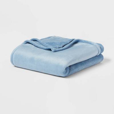Room Essentials Solid Plush Bed Blanket, Twin XL, Light Blue