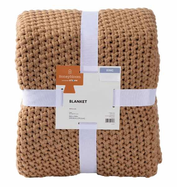 Honeybloom Sweater Knit Bed Blanket, King, Brown