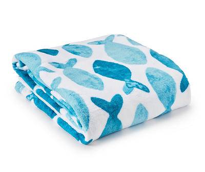 Real Living Grecian Getaway Fish Pattern Fleece Throw, White-Blue