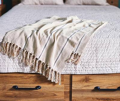 Stripe Tassel-Trim Cotton Throw, 50 x 60 In, Tan-White
