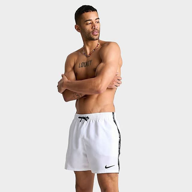Nike Swim Tape Logo 5 Volley Shorts, Men, 2XL, White