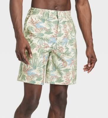 Goodfellow & Co. Dark Green Floral Print Hybrid Swim Short, Men, 34