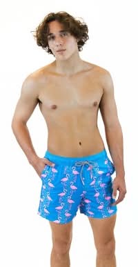 Party Pants Flamingo Swim Short, Men, S, Blue