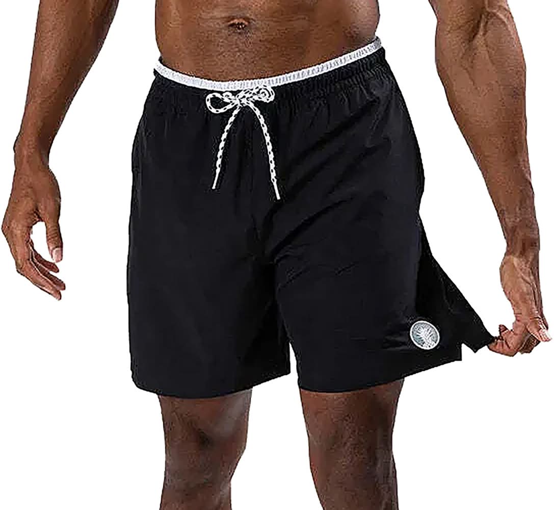 Goodfellow & Co. Men's Quick Dry Upf 50+ Swim Trunks With Boxer Brief Liner, L, Blue Ombre