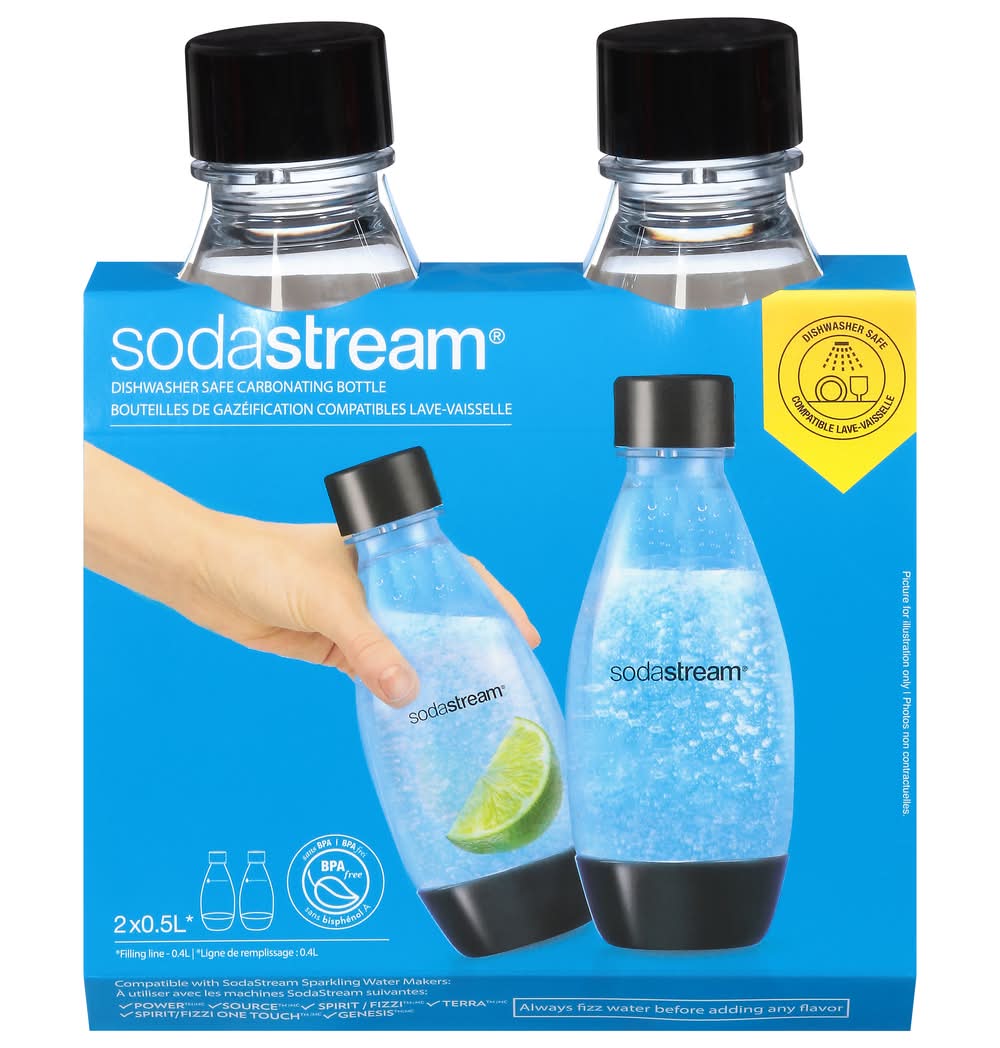 SodaStream Carbonating Bottle Twin pack, Clear-Black (2 ct)