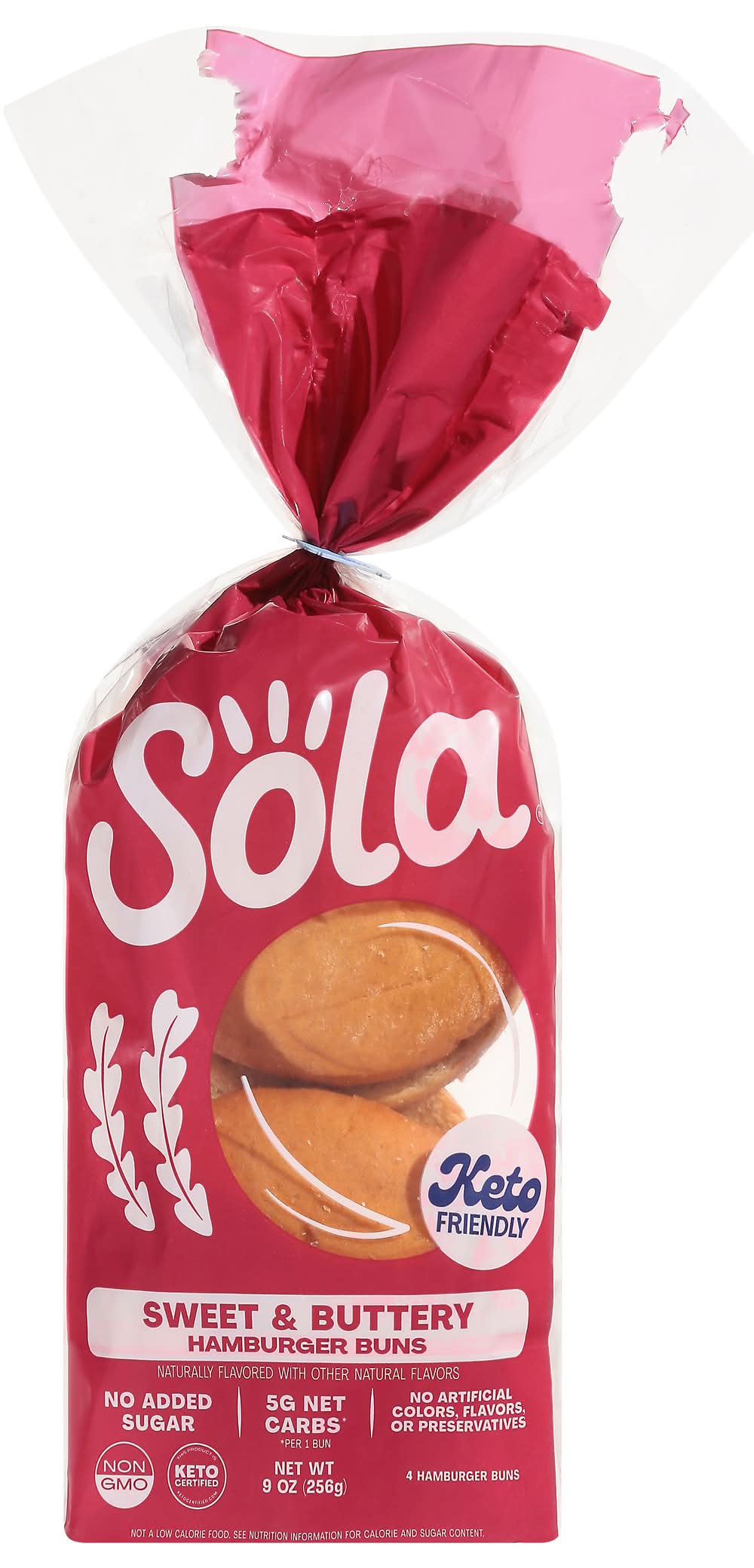 SOLA Sweet & Buttery Hamburger Buns (9 oz, 4 ct)