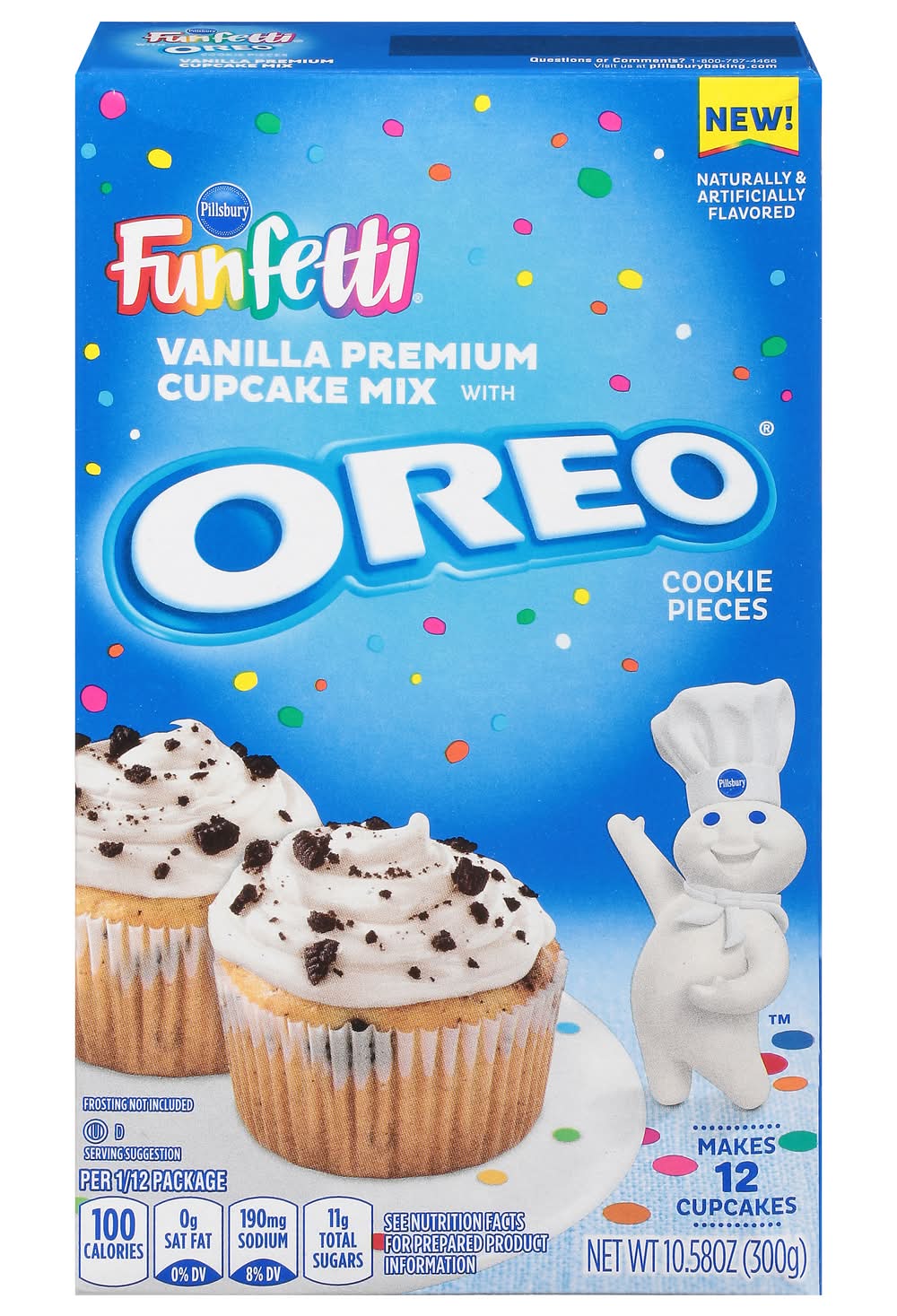 Pillsbury Funfetti Cupcake Mix With Oreo Cookie Pieces, Vanilla (10.58 oz, 12 ct)