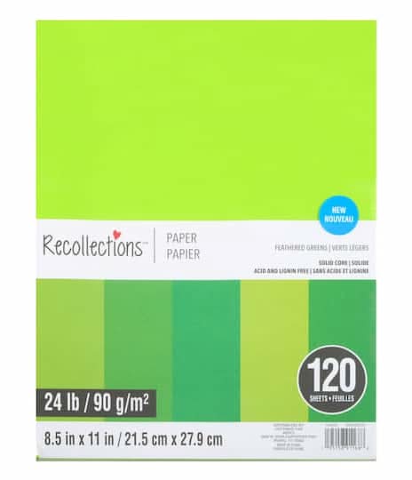 Recollections Mixed 24lb Solid Core Paper Sheets, 8.5x11 in, Feathered Green (120 ct)