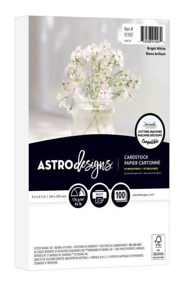 Neenah Astrodesigns Cardstock, 4.5x 6.6 in, Bright White (65 lbs, 100 ct)