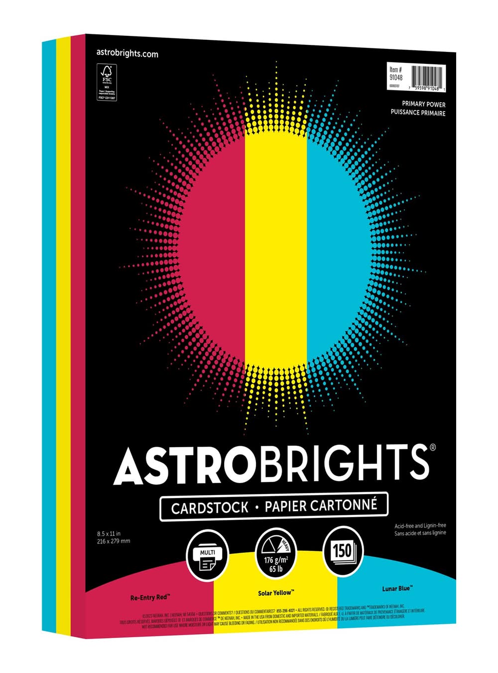 Astrobrights Color Cardstock, 8.5" x 11", Reentry Red-Solar Yellow-Lunar Blue (150 ct)