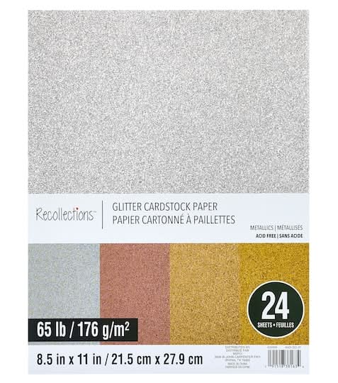 Recollections Glitter Cardstock Paper, 8.5" X 11", Metallics (24 ct)