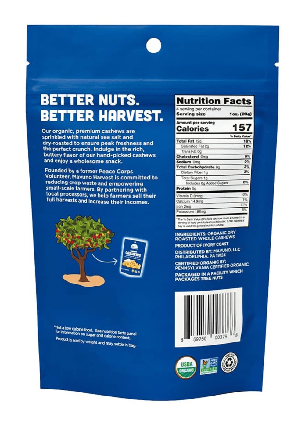 Mavuno Harvest Organic Cashews Roasted With Sea Salt (4 oz)