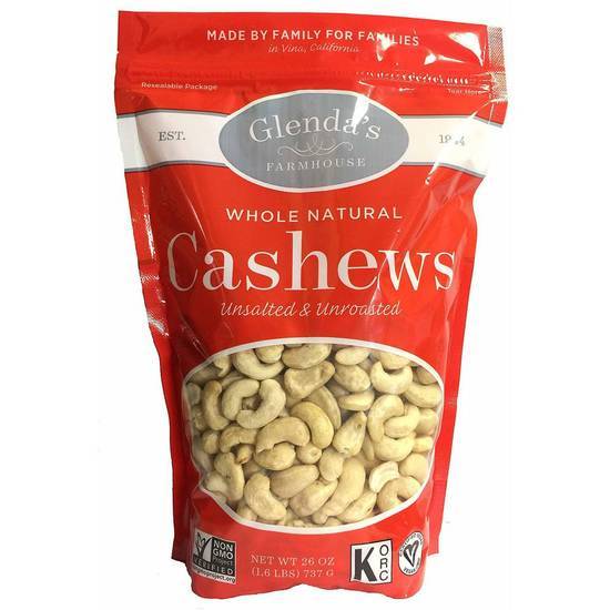 Glenda's Farmhouse Whole Natural Unsalted/Unroasted Cashews (1.62 lbs)
